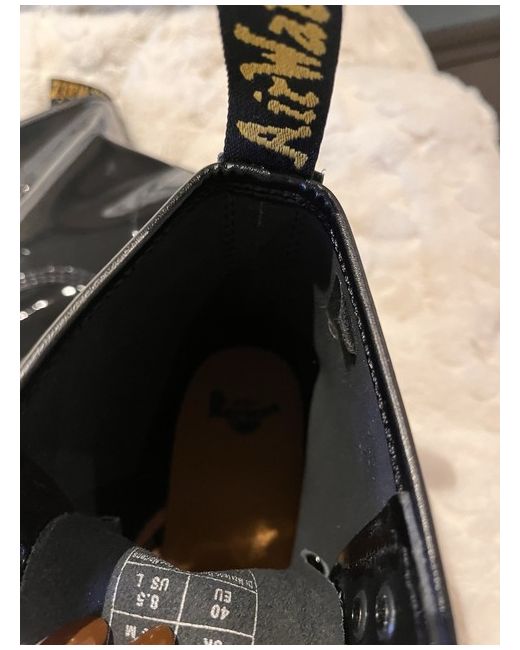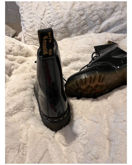 Never worn but without box or label. Black patent leather Dr Marten ladies boots. Stylish and iconic