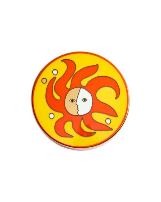 Jonathan Adler Playa Round Box.Color:Yellow/Orange/Gold.Material:High-fired porcelain with color and real gold accents.