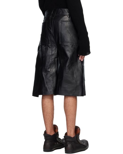 Grained leather shorts. · Topstitched patchwork construction · High-rise · Belt loops · Four-pocket styling · Zip fly with sterling silver pull-tab · Press-stud tab at fly · Raw edge at cuffs · Bonded microsuede lining Supplier color: Black