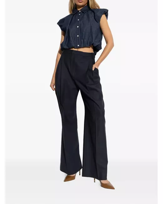 blu design crop chiusura a bottoni maniche corte