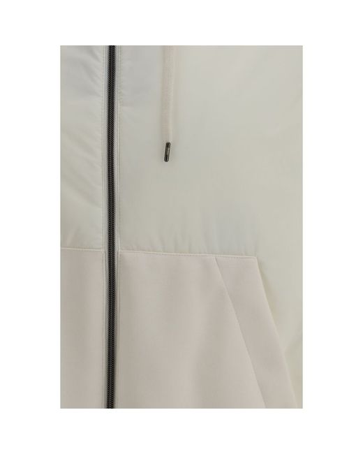 The hooded Jacket by Herno is crafted from polyamide with contrasting inserts inspired by classic sweatshirt detailing. It features a drawstring hood with front cords, a zip fastening, and a clean, contemporary silhouette. A versatile piece designed for a practical yet refined look. Season: SS26 Fit: Regular Composition: 100% Polyamide
