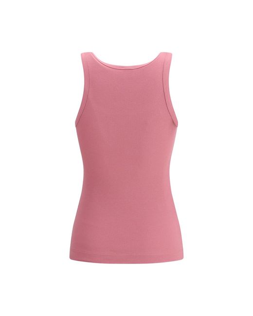 The ribbed tank Top with Love Birds logo by Pinko blends simplicity and character in a finely knitted cotton design with a close fit. The round neckline and ribbed texture enhance the silhouette, while the small centrally placed logo adds a subtle, signature touch. A versatile piece perfect for everyday wear, ideal both for outdoor moments and as a refined layering option under a formal blazer. Season: SS26 Fit: Slim Composition: 97% Cotton 3% Elastane