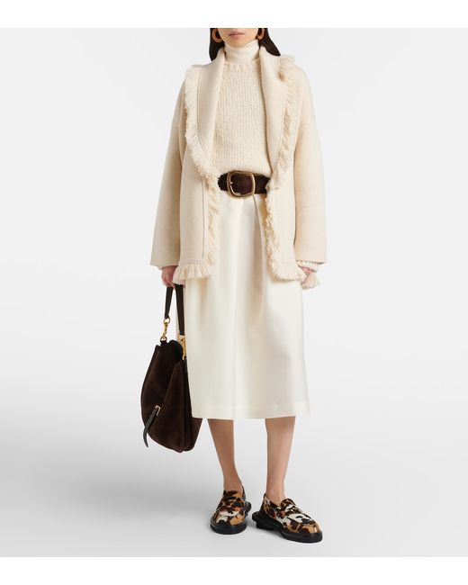 Materiale: 64% cashmere, 36% cotone. Trattamento: lavaggio a secco. Made in Italy. Colore del designer: Off White. Cintura rimovibile. Orli sfrangiati. Tasche: tasche a fessura laterali. Cashmere, Cotone. Include: borsa porta abiti.