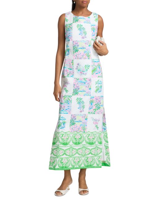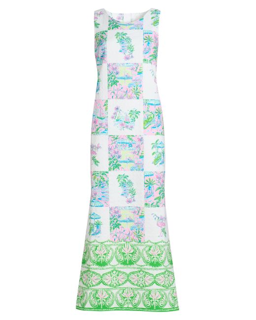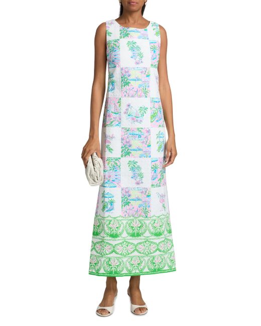 Crafted of stretch cotton, Lilly Pulitzer's Dee maxi dress features a floral patch print, scoopback, and novelty goldtone zip closure. Crewneck Sleeveless Side slits Scoopback Back zip closure 97% cotton/3% spandex Hand wash Imported SIZE & FIT About 55" from shoulder to hem Bust: about 36" Waist: about 34" Model measurements: 5'10" tall Model is wearing a US size 4 Please note: Compared to the Brand's Size Guide, this style measures true to size. Modern Collections - Lilly Pulitzer > Lilly Pulitzer > Saks Fifth Avenue. Lilly Pulitzer. Color: Multi Sunny Dee Patch. Size: 0.