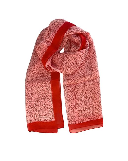 Wrap yourself in the epitome of Italian elegance with this Borbonese silk stole. A splash of sophistication, it flaunts a charming micro spotted print, perfectly offset by a striking bright red piping. The iconic Borbonese logo whispers luxury, while its generous dimensions of 65 cm x 180 cm promise versatile styling options. Dare to stand out and drape yourself in this sumptuous accessory. Material: 100% SILK Country of origin: ITALY Color: Red