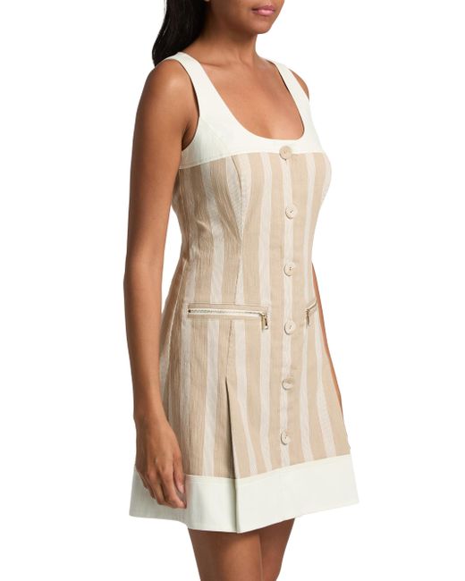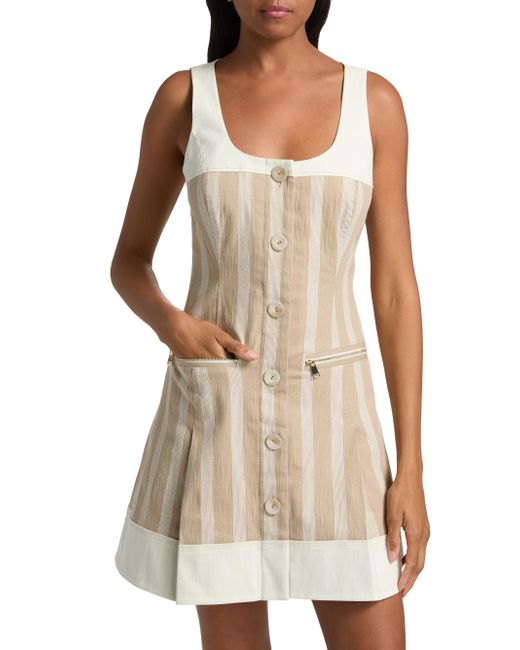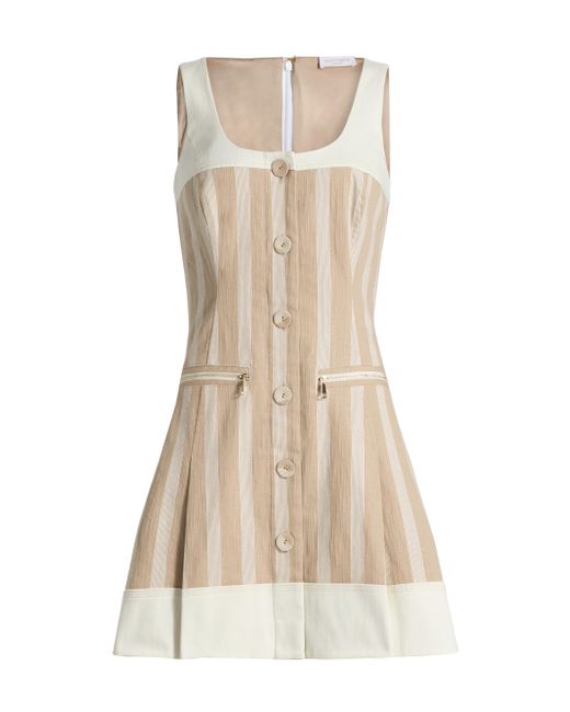 Crafted of a woven cotton blend, the Francesca minidress from Ramy Brook is styled with fabric-covered buttons, zip pockets, and crisp box pleats. Scoopneck Sleeveless Side zip pockets Button-front closure 70% cotton/17% polyamide/10% polyester/3% elastane Combo: 72% cotton/25% polyester/3% spandex Lining: 100% polyester Dry clean Imported SIZE & FIT About 33" from shoulder to hem Model measurements: 5'10" tall Model is wearing a US size 4. Contemporary Sportswear - Contemporary Collections > Ramy Brook > Saks Fifth Avenue. Ramy Brook. Color: Sandstone Cotton Stripe. Size: 0.