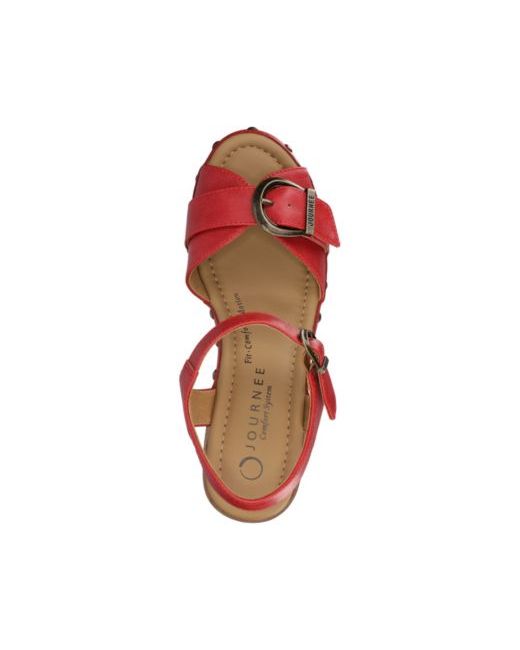 Elevating your casual style, these Journee Collection sandals feature a walkable platform and a secure ankle buckle. The integrated comfort system in the footbed provides supportive cushioning for all-day wear.