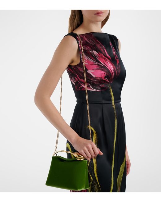 Materiale: velluto. Rivestimento: pelle. Made in Italy. Colore del designer: Cactus. Inserto: ottone. Colore del metallo: oro. Manico, Tracolla rimovibile a catena. Interno: scomparto singolo. Chiusura: chiusura magnetica. Include: scatola, sacca protettiva.