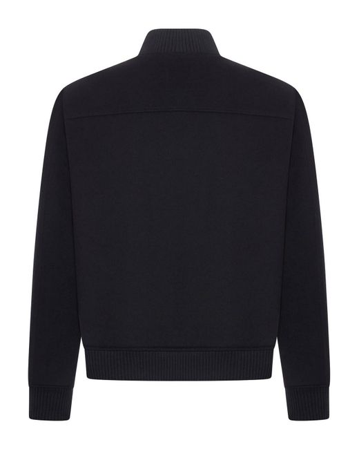 Patrick cashmere jacket, stand-up collar, two-way zip front closure, slanted front pockets, long sleeves, ribbed collar, hem, and cuffs, 100% cashmere, color: black