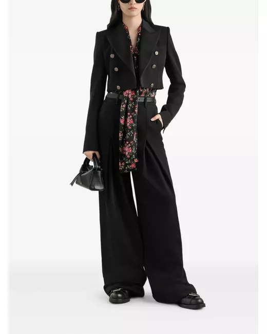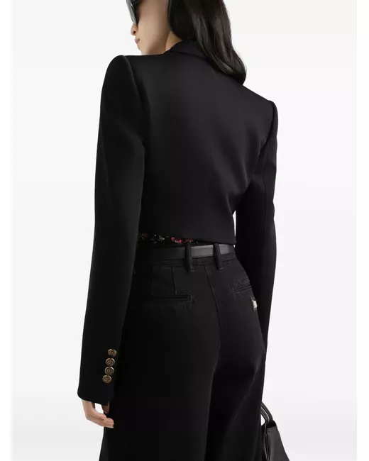 black double-breasted button fastening peaked lapels long sleeves cropped