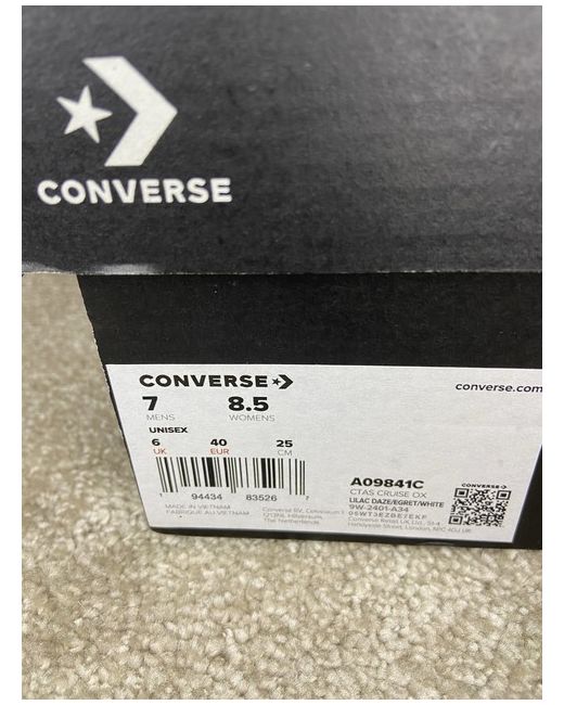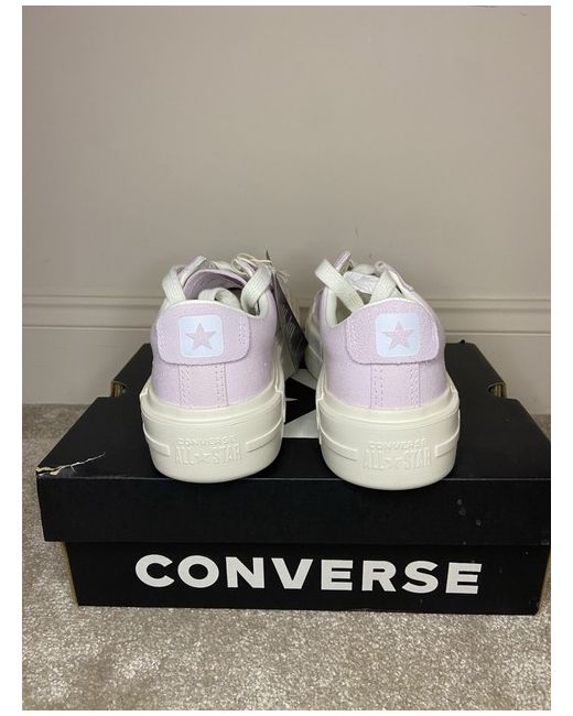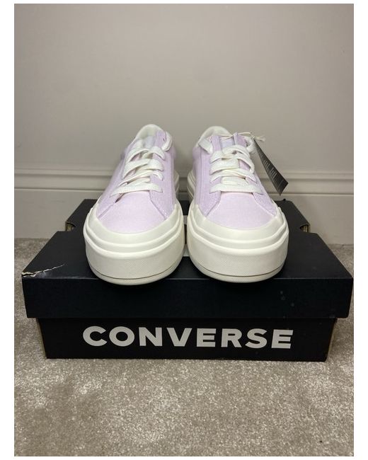 Pair of converse all stars cruise platform lows in lilac daze. Ladies size 6 brand new in box never worn. Lilac uppers in canvas with leather trim. Cream rubber sole.