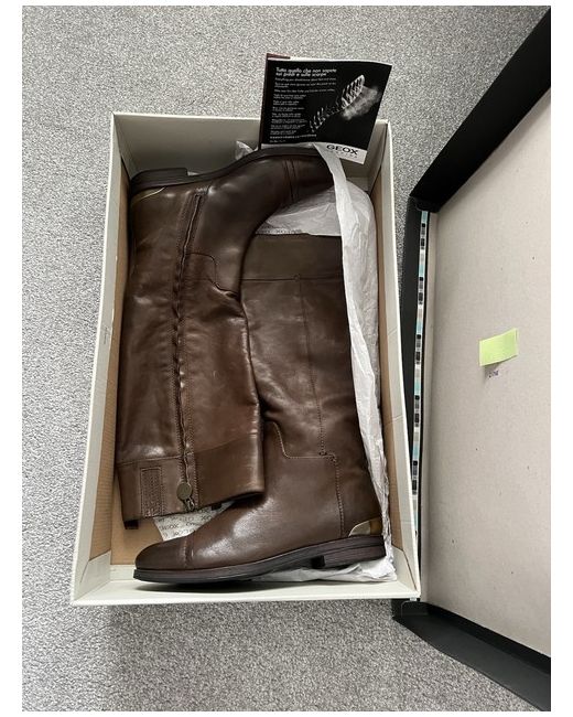 Geox Leather boots size EU40 near as 6.5 size unfortunately too small for me. I purchased these lovely soft leather boots In Geox from Oxford Street, London, but once home they really were too small for me, but too far to return., so got put in the wardrobe. Now time to make some room. They were around £200 new.