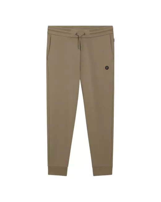 light brown drawstring fastening logo appliqué side slip pockets elasticated cuffs elasticated waistband