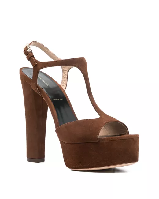 brown platform sole block heel T-bar strap buckle fastening This piece comes complete with a protective dust bag.