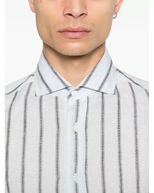 blue striped pattern button fastening long sleeves buttoned cuffs point collar
