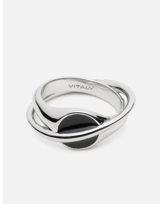 VitalySynchroMade with recycled stainless steelUnibody ring with orbital geometryWraps around a central enamel coreCircular centerpieceWaterproofColor: Stainless Steel / Black