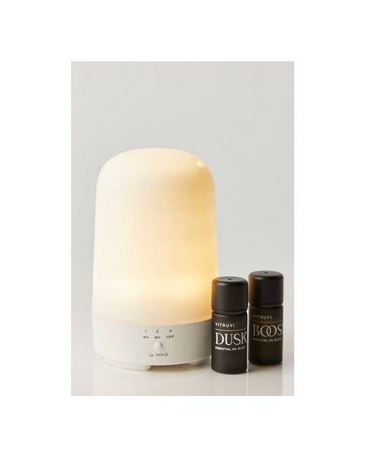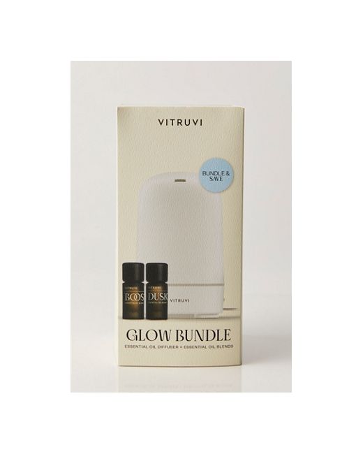 This bundle from Vitruvi features their Glow Diffuser and two diffuser blends, Dusk and Boost. * 0.17 fl oz x 2 * Vegan & cruelty-free oils * Free of synthetic fragrances * 100% pure essential oils * Recyclable & UV protected bottles **Glow Diffuser:** The Glow Diffuser from Vitruvi lights up, creating soft ambience while scenting your home naturally with 100% pure essential oils. The entire body lights up, giving off a soft glow, and also has two time settings (4-hour continuous and 8-hour intermittent) to scent your space on your schedule. * BPA-free plastic * 4-hour and 8-hour settings * 300 sq.-ft. diffusing capacity * Automatically turns off when time is up or when water runs out * 100 mL water capacity **Dusk Diffuser Blend:** Dusk is herbal and warm. With top notes of Ho Wood and Frankincense and bottom notes of Eucalyptus and Lavender, it smells like dry spices and desert sunsets. * Perfect for: Creating a warm and inviting atmosphere, vvening relaxation and unwinding, cozy ambiance in any space, & feeling warm and relaxed. **Boost Diffuser Blend:** Boost is juicy and light. With top notes of Juniper and Lime and bottom notes of Grapefruit and Bergamot, it smells like warm wind and fresh citrus. * Perfect for: Infusing your space with an invigorating and refreshing aroma, creating an uplifting atmosphere, feeling rejuvenated and energized, & morning use or whenever you need a pick-me-up. Vitruvi Glow Bundle at Free People