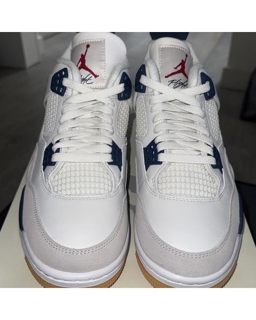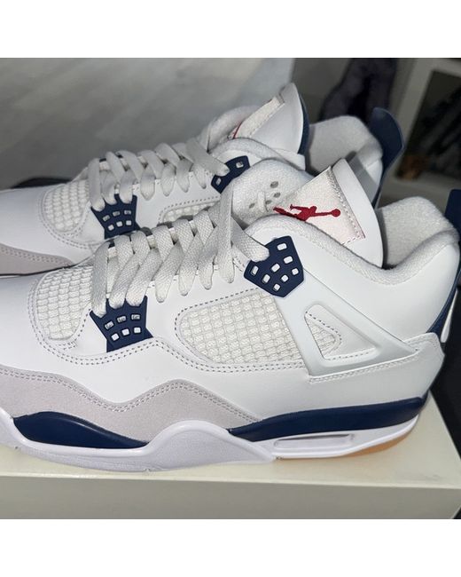 A piece from my collection I’m selling. Only because I’m a size 9 UK and these were ordered by mistake but I thought I’d keep em. But now ready to sell. The Jordan 4 Sb Navy is a stylish and versatile pair of men's trainers in a classic blue colour. With a lace-up closure and leather upper material, these sneakers offer both comfort and durability. Perfect for casual wear in the spring season, these Jordan 4s also feature retro themes and are part of the iconic Air Jordan product line.