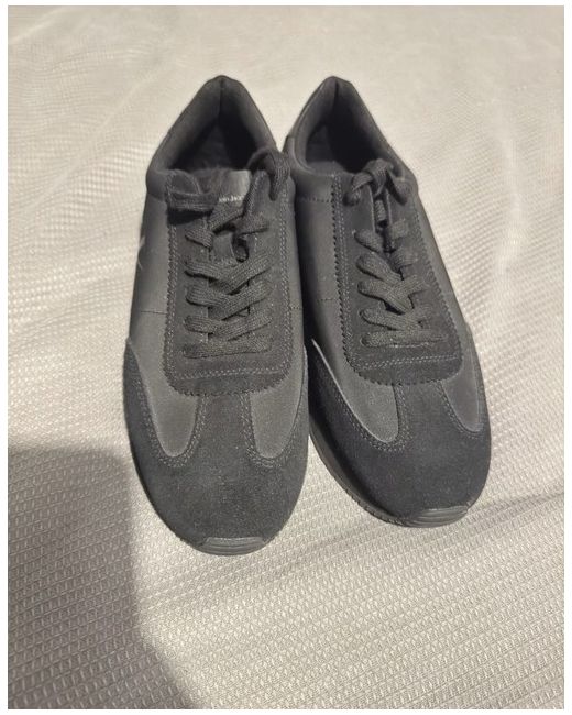 The Calvin Klein Men's Trainers are stylish and comfortable sneakers featuring a low top design with a lace-up closure. Made from black leather, these trainers are perfect for casual occasions in the spring season. The rubber outsole provides supination support, making them ideal for everyday wear. With the Calvin Klein brand name and signature style, these trainers offer a touch of sophistication to any outfit. Perfect for men looking for a classic sneaker option with a modern twist.