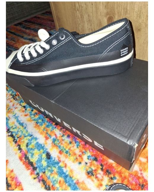 The Limited Edition Jack Purcell Converse trainers are a stylish and unique addition to any man's footwear collection. With a classic black colourway and lace-up closure, these sneakers boast a comfortable standard shoe width and a durable rubber outsole. Ideal for casual occasions, these Converse Jack Purcell trainers are designed for supination pronation and showcase the iconic Converse brand in a limited edition release. Perfect for those looking for a versatile and on-trend sneaker option. Collaboration with Dover Street Market