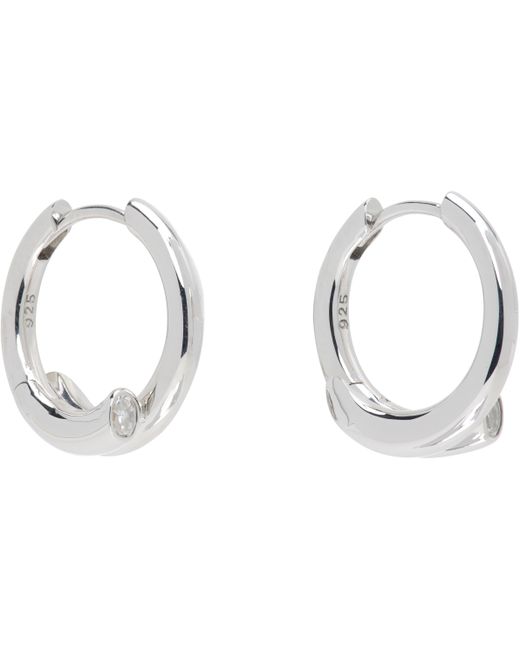 Pair of hoop earrings in rhodium-plated sterling silver. · Cubic zirconia at hoop · Hinged-post fastening · D0.75 Supplier color: Silver