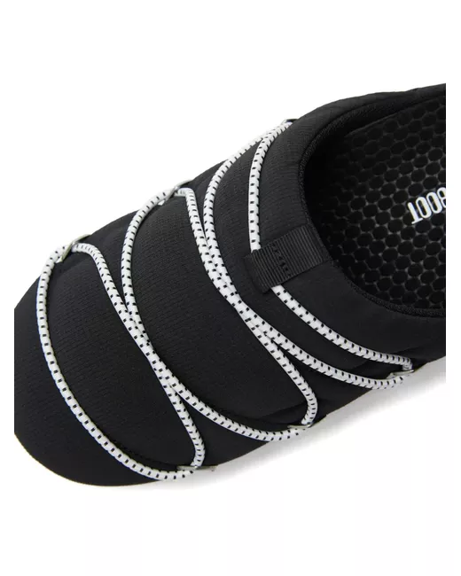black padded panels logo embellishment laces detail slip-on style flat sole