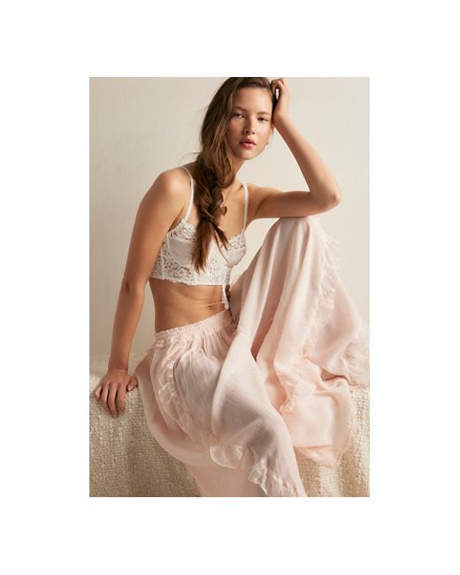 Romantic lace ruffles flow down these pants from Intimately, featuring an ultra-soft fabrication, a relaxed, billowy fit, and an elastic waistband for an alluring, wear-everywhere style. * Billowy, pull-on style * Elastic waistband * Mid-rise style * Ruffled lace details Ready For More Pants by Intimately at Free People in Angel Food, Size: XS