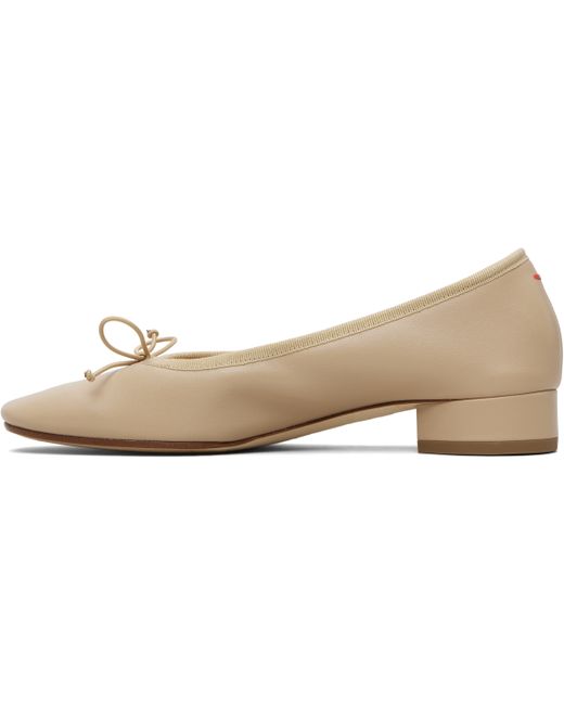 Buffed leather heels. · Square toe · Bow accent at vamp · Grosgrain trim at collar · Covered block heel with rubber injection · Leather sole · Heel: H1 Supplier color: Sand