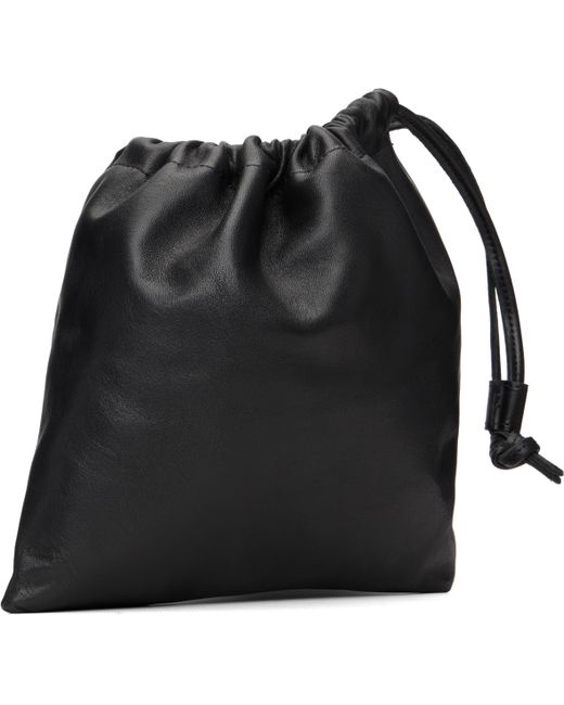 Buffed leather pouch. · Drawstring closure · D-ring at interior · Suede lining · H8 x W9 Supplier color: Black leather