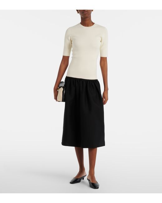 Materiale: 53% viscosa, 31% poliammide (riciclata), 14% poliammide, 2% elastan. Trattamento: lavaggio a secco. Made in China. Colore del designer: Ecru. Materiale II: 81% lana, 19% seta. Chiusura: zip posteriore nascosta. Tasche: tasche a fessura laterali.