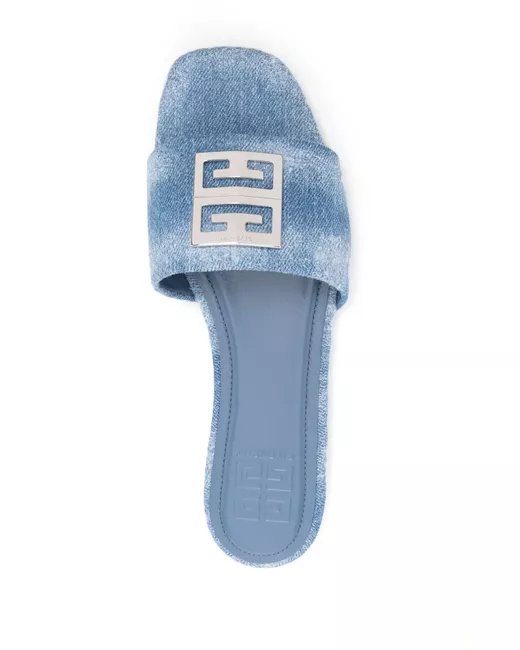 light blue cotton/calf leather slip-on style logo plaque open toe branded insole flat sole