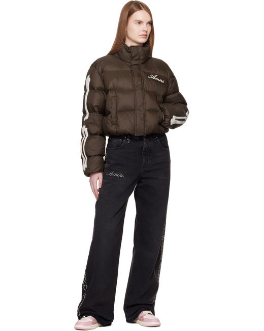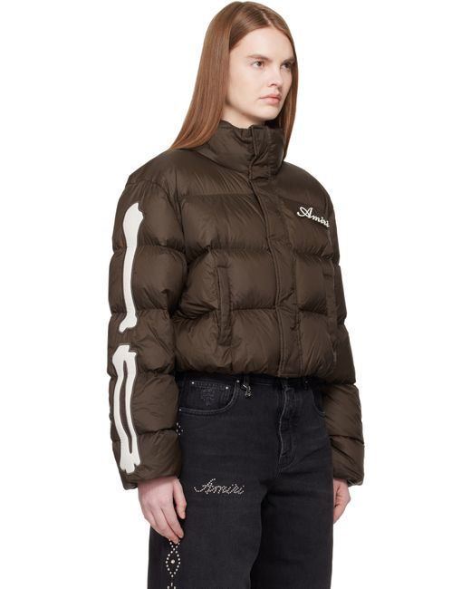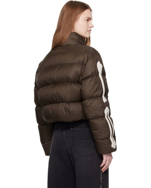 Down-filled and quilted nylon taffeta jacket. · Stand collar · Zip closure with press-stud placket · Rubberized logo patch at chest · Welt pockets at waist · Bungee-style drawstring at cropped hem · Dropped shoulders · Graphic appliqués at sleeves · Elasticized cuffs · Welt pockets at interior · Full nylon taffeta lining Supplier color: Dark brown