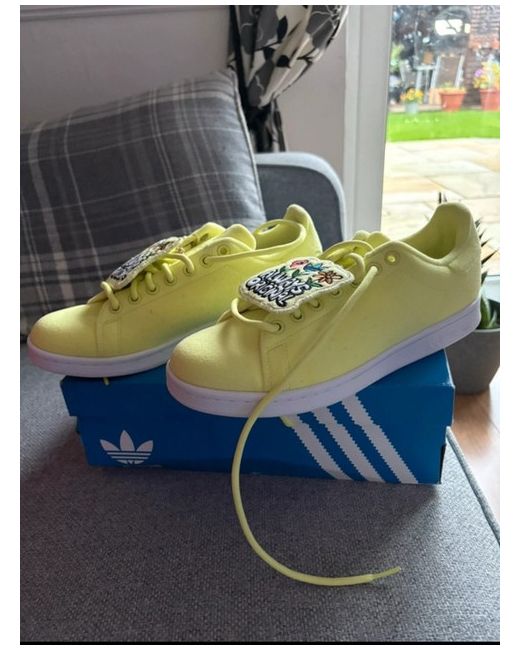 Ladies Stan Smith Yellow/Cloud trainers. Size 7.5, tennis ball fabric. New with box, the box has some signs of wear.
