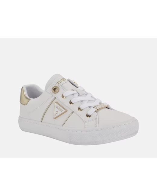 This product is a pair of GUESS Women's Trainers in size UK 5. They are a stylish and comfortable option for casual wear, featuring a lace-up closure, rubber outsole, and a classic white colour. The trainers are from the Guess product line, designed specifically for women who appreciate both fashion and comfort. Perfect for the summer season, these sneakers offer a standard shoe width and are not vintage or customised. Ideal for adding a touch of style to any casual outfit.