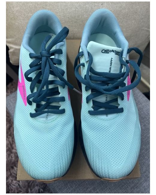 The Brooks Cat Mount Women's Running Trainers in size 6.5 are a stylish and functional choice for active women. Featuring a low top shaft style and lace-up closure, these trainers provide a secure fit for running and other activewear occasions. The multicoloured design that being teal / light minty green / touch if vibrant pink along with the Brooks logo accent adds a trendy touch, while the outsole material ensures durability and grip. Ideal for any season, these trainers from the Brooks Running product line combine comfort and style.