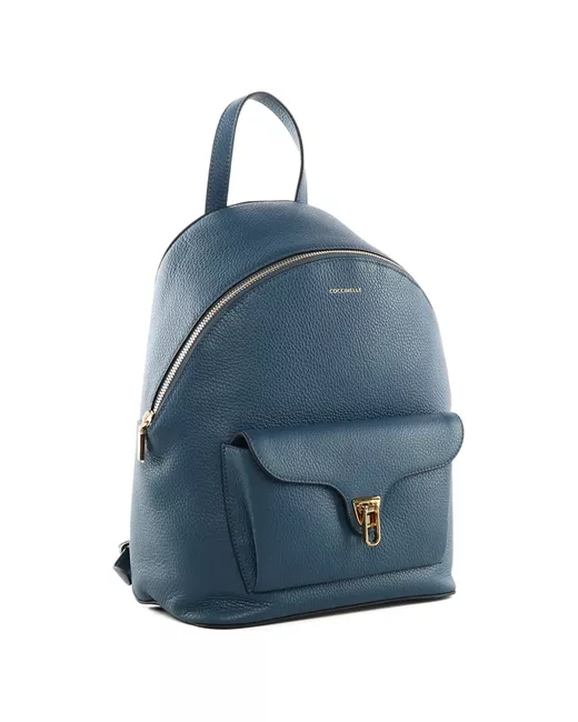 blue leather front pocket top handle zip fastening shoulder straps