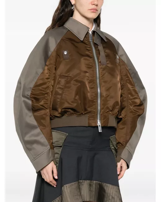 brown panelled design zip fastening press-stud fastening sleeve zip pocket point collar
