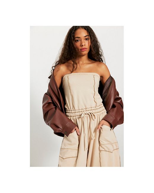 A cozy done-in-one, this bold one-piece from our FP One collection will turn heads with every wear. **Fit:** Relaxed throughout with cinched waist **Features:** Tube bodice, elastic waistband with drawstring, barrel leg design, contrast border piping, pull-on design **Why We ❤ It:** Easy with court sneakers or sleek with kitten heels, this style has endless ways to wear. FP One Kaiden One-Piece at Free People in Tea, Size: XS