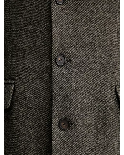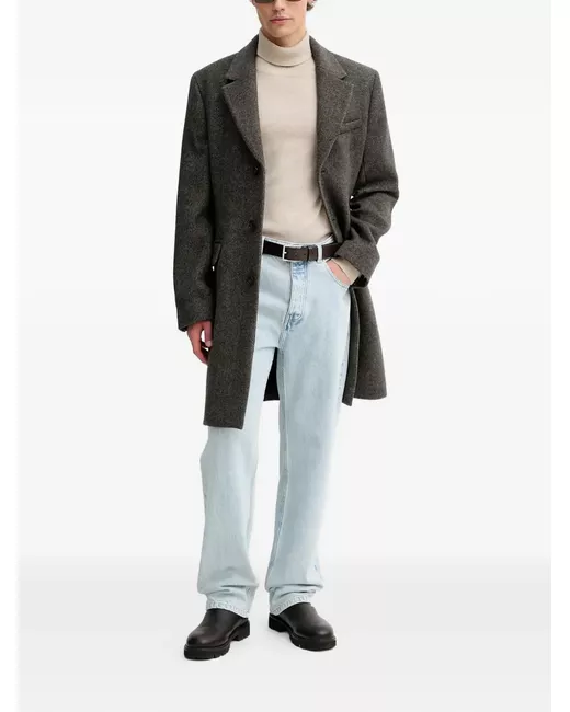 grey herringbone weave notched lapels button fastening flap pockets buttoned cuffs