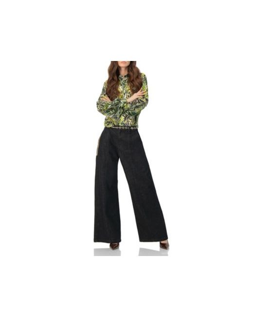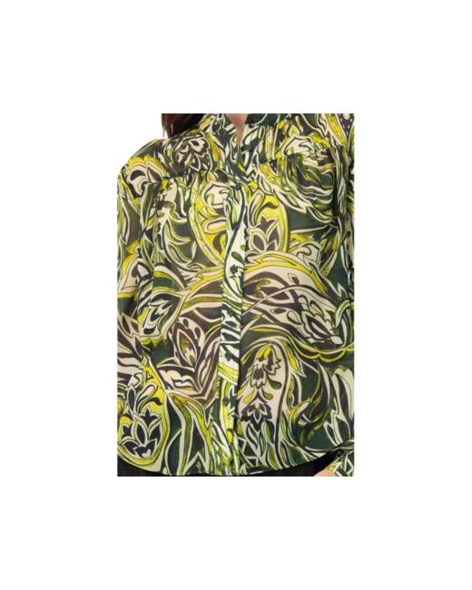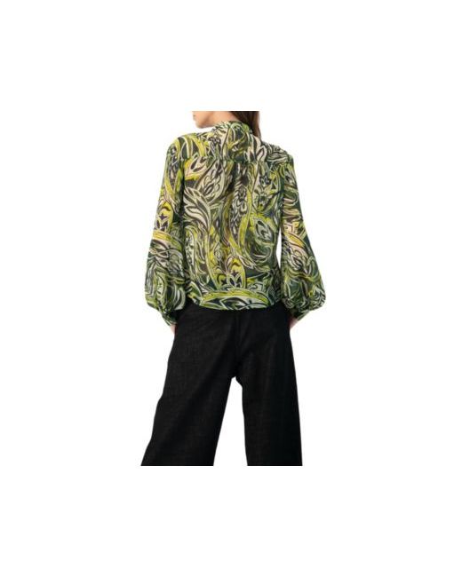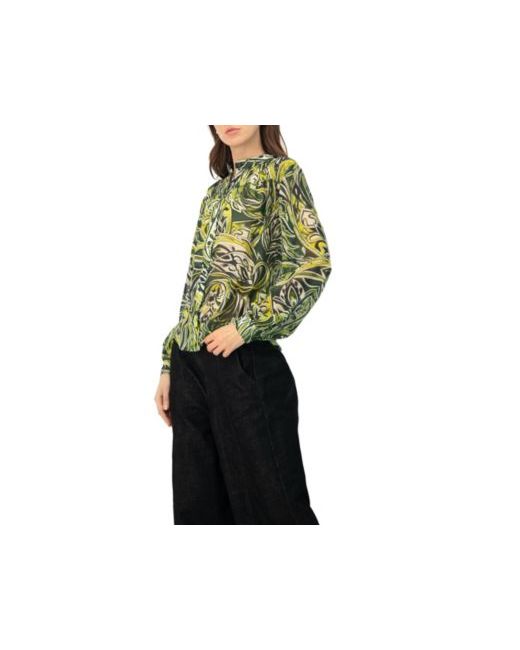 Long-sleeve printed blouse with a round neckline and front buttons, featuring a straight cut design.