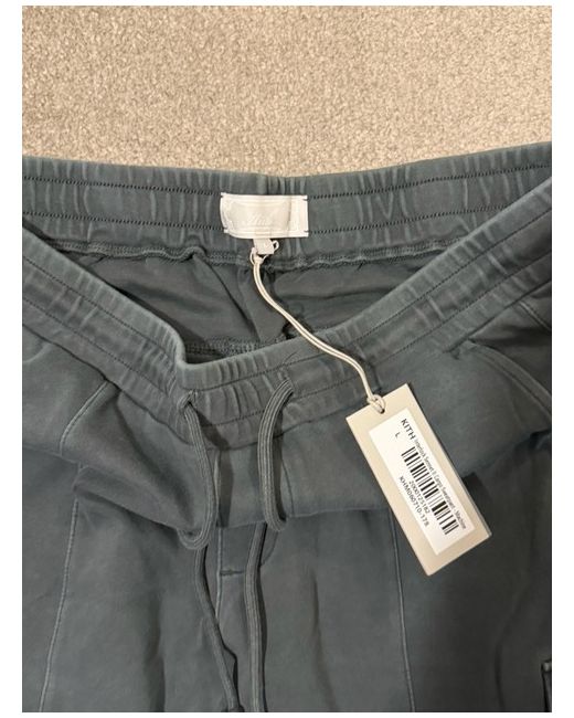 The Kith Cargo Sweatpants in size L are a stylish and comfortable option for men looking for a versatile addition to their wardrobe. Made from cotton, these trousers feature a cargo style design with pockets, adding a practical touch to the sweatpants. The green colour gives a pop of freshness and style, perfect for casual everyday wear. The Kith brand ensures a high-quality finish and on-trend appeal, making these sweatpants a must-have for any fashion-conscious individual.