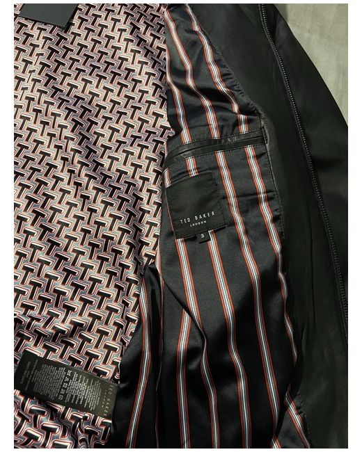 This Ted Baker black leather bomber jacket in size 3 is a stylish and versatile piece for casual occasions. The jacket features a zip closure and regular fit, with polyester insulation for warmth. The classic bomber style and iconic Ted Baker brand make it a timeless addition to any man's wardrobe. Perfect for walking and everyday wear, this jacket exudes quality and sophistication.