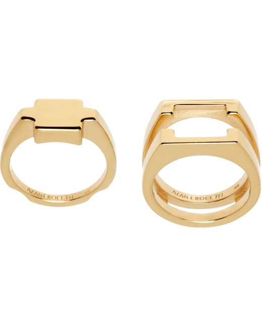 Set of two connecting signet rings in gold vermeil. Logo etched at inner band. Supplier color: Gold vermeil