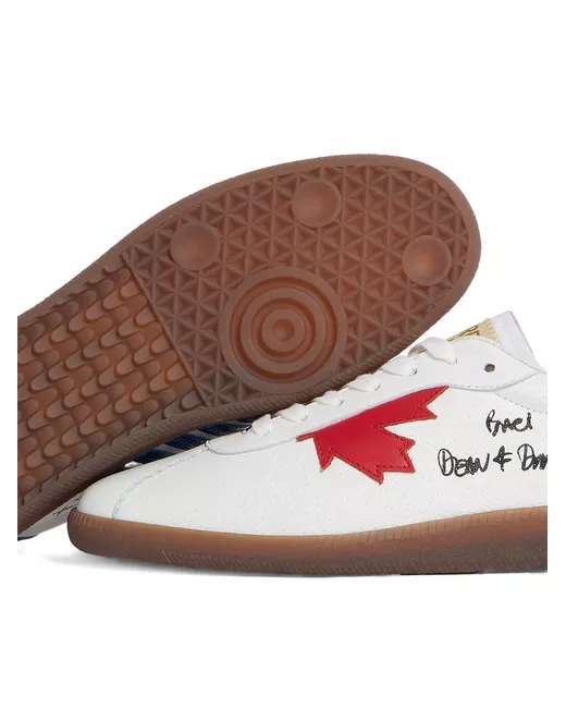 white maple leaf detail rubber sole perforated detail lettering contrast heel counter