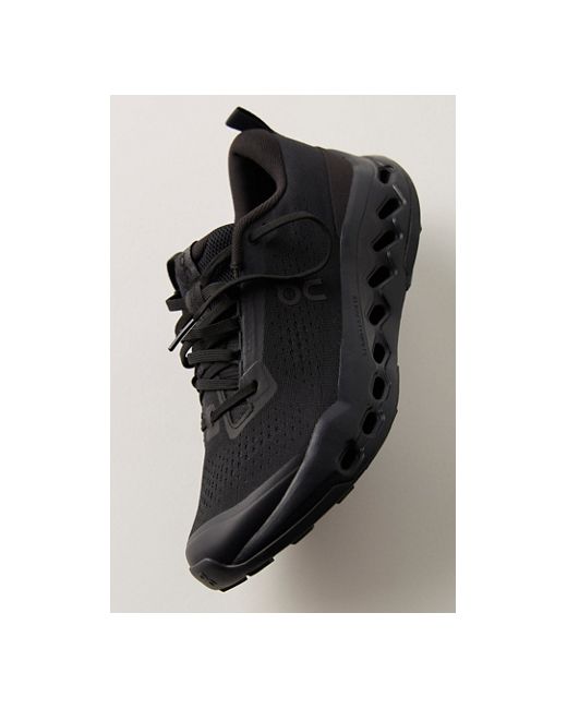Adventure starts with these trail-friendly runners from On, featuring a secure grip and improved fit for the smoothest, most supportive ride no matter the terrain. * CloudTec Phase® midsole * Shock-absorbing Helion™ superfoam * Soft padded heel * Missiongrip™ rubber outsole * Protective, breathable and abrasion-resistant upper * Bigger lugs in a boomerang shape On Cloudsurfer Trail 2 Sneakers at Free People in Black/Black, Size: US 7.5