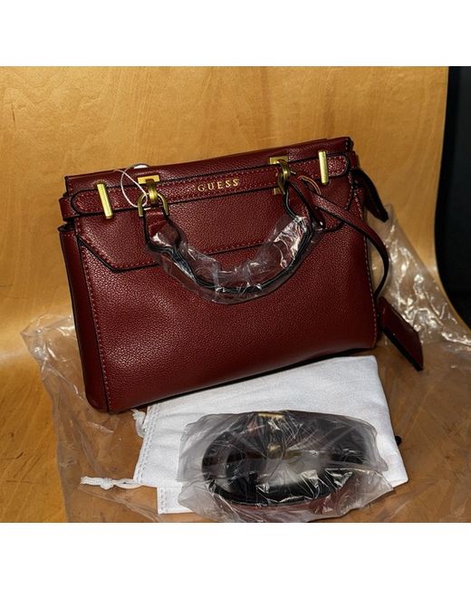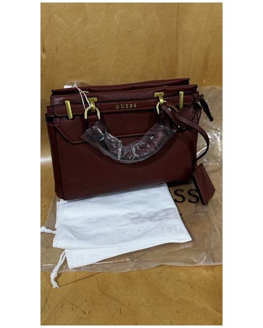 The GUESS Women's Satchel Handbag in Brown is a stylish and versatile accessory for casual occasions. Made from faux leather with brown hardware, this small-sized bag features a zip closure and comes with a detachable strap for added convenience. The satchel/top handle style adds a trendy touch, making it a must-have for any fashion-forward woman.