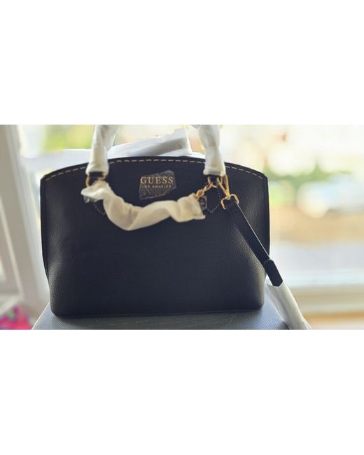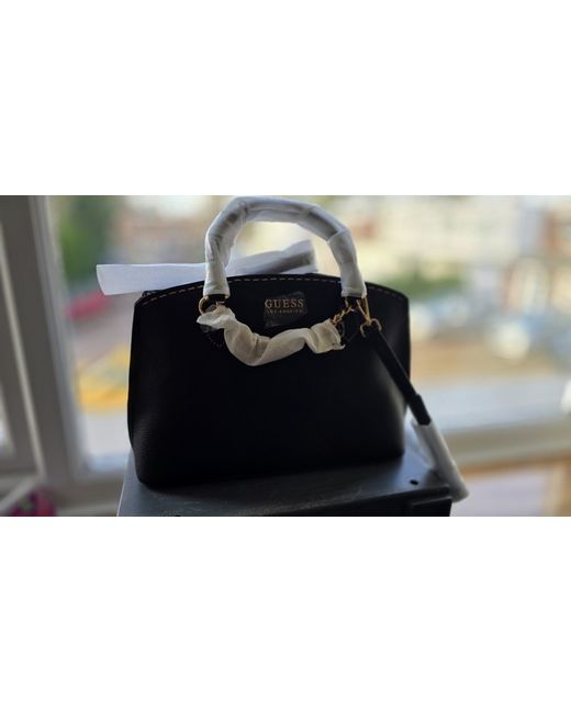 The GUESS Women's Handbag is a stylish shoulder bag in black faux leather with a quilted finish and logo pattern. This medium-sized handbag features a zip closure and inner pockets, making it perfect for casual occasions. With a genuine leather handle/strap, this designer handbag from GUESS is a chic addition to any woman's wardrobe.