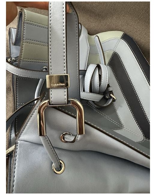 Calvin Klein Blue Gradient Vegan Leather Harmony Draw String Shoulder / Crossbody Bag Silver Hardware Dust bag included Magnetic closure