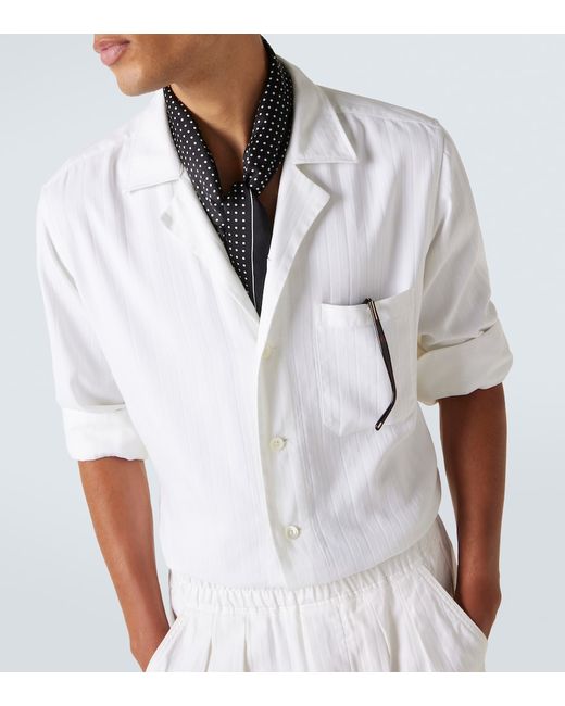 Materiale: 66% cotone, 34% seta. Trattamento: lavaggio a secco. Made in Italy. Colore del designer: Optical White. Contiene parti non tessili di origine animale. Chiusura: abbottonatura frontale. Collo: cubano / bowling. Tasche: tasca sul petto. Cotone, Seta.