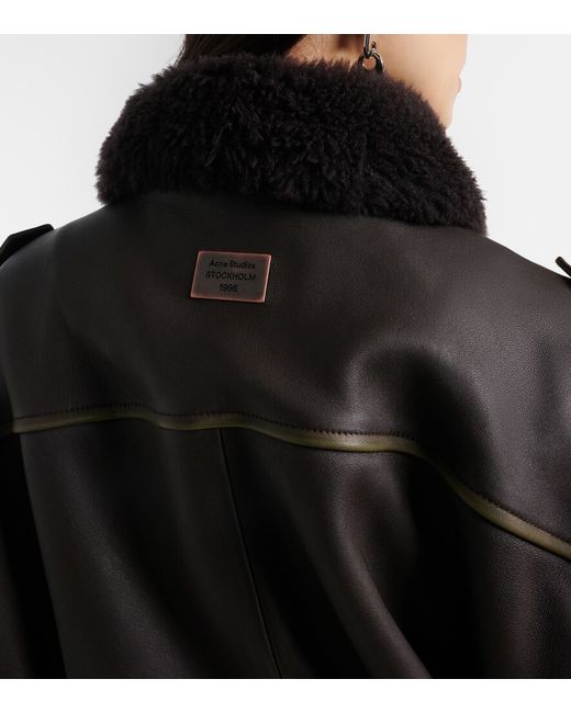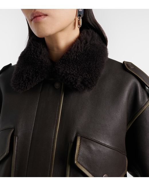 Material: 100% lamb leather. Care instructions: specialist clean. Made in Turkey. Designer color name: Dark Brown. Lining: 100% viscose. Trim: 100% shearling. Closure: two-way zipped front with snap-button fastenings. Pockets: snap-buttoned pockets, side slit pockets, internal pocket. Leather.